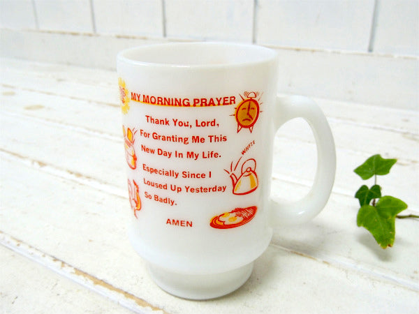 アメリカ南部・テキサス州郊外で見つけました・・『MY MORNING PRAYER』ミルクガラス製・ヴィンテージ・フッテッド・マグカップです。