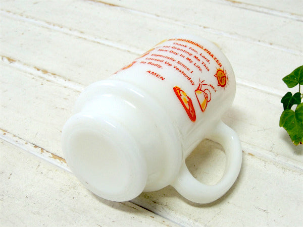 USA 朝のお祈り ミルクガラス・ヴィンテージ・フッテッド・マグカップ キッチン雑貨