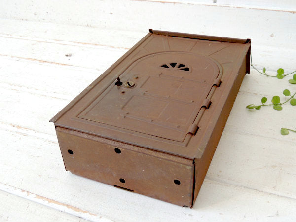 【FULTON】ドア型・ブラウン色・ティン製・アンティーク・メールボックス・郵便受け・ポスト USA