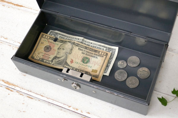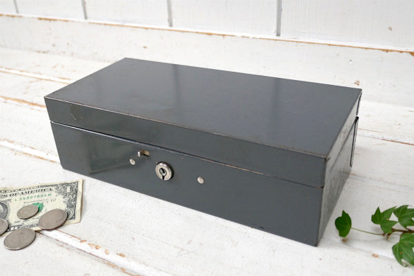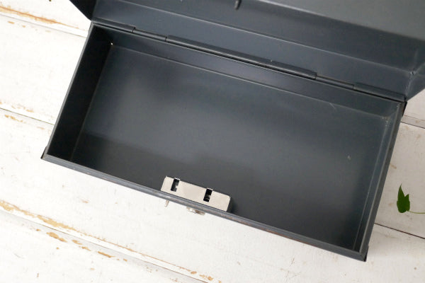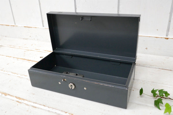 工業系 ダークグレー スチール製 ヴィンテージ キャッシュボックス 金庫 ツールケース 工具箱
