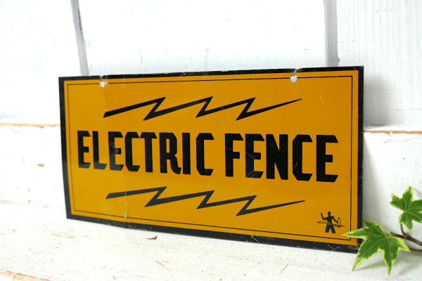 ELECTRIC FENCE 電気柵・USA・ティン製・ヴィンテージ・サイン・プレート 看板 工業系