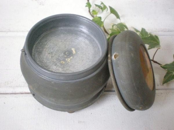 素材は錫製(エタン・ピューター?)と思われ、底・脚部分は木製になっております。