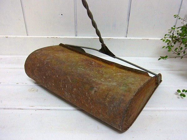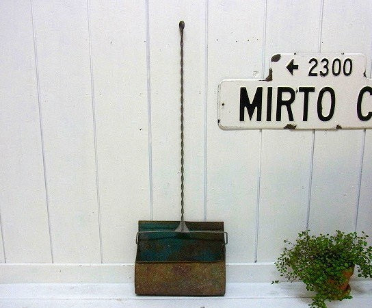 アメリカでみつけました・・ロングハンドルのブリキ製ヴィンテージ・ダストパン(ちりとり)です。