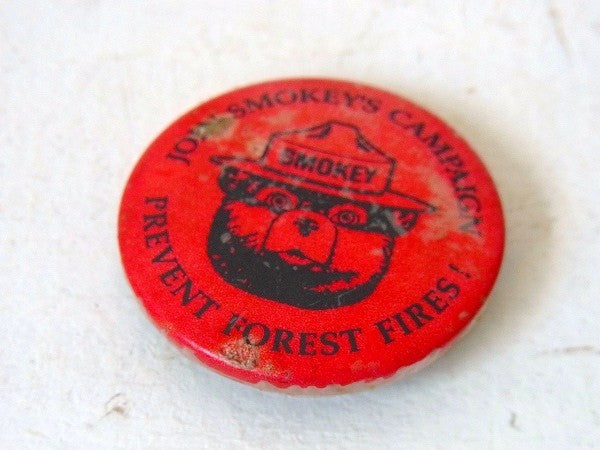 【スモーキーベア】赤色・ヴィンテージ・缶バッジ USA