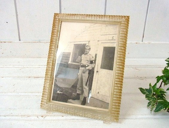 アメリカ西海岸・カリフォルニアで見つけました・・古いモノクロ写真入りのプラスティック製・アンティーク・フォトフレーム(額縁)です。