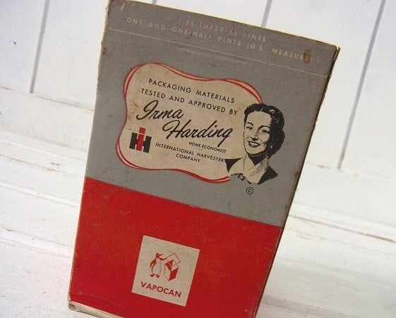 “イルマハーディング”のイラストや【PACKING MATERIALS TESTED AND APPOROVED BY Irma Harding HOME ECONOMIST INTERNATIONAL HARVESTER COMPANY】とございます。