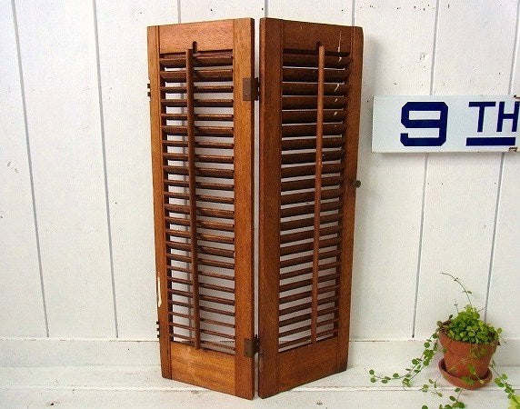 USA!白いペンキの付いた木製・アンティーク・ルーバー/ヴォレー/ウッドシャッター/建具