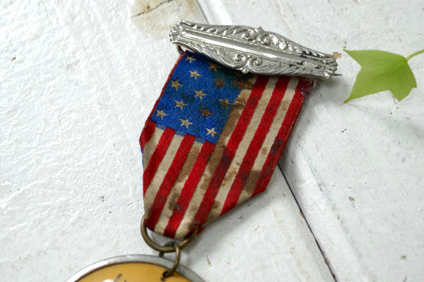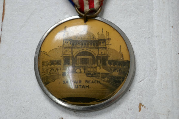 アメリカ西海岸 カリフォルニア サンフランシスコで見つけました・・アメリカ合衆国SALTAIR BEACH UTAH ユタ州 建築 メダル 13星 フラッグ リボンバッジ・ピンバッジ(メダル ブローチ)です。