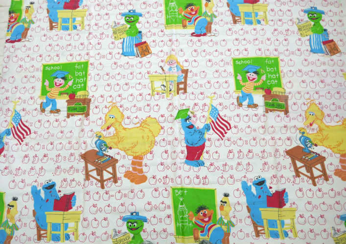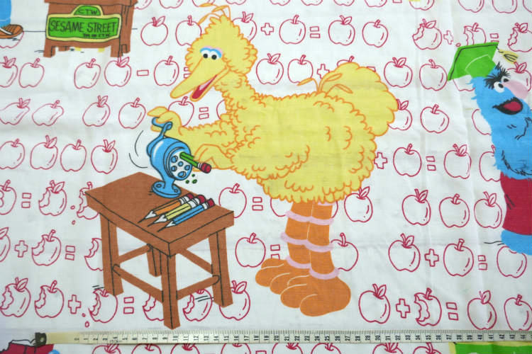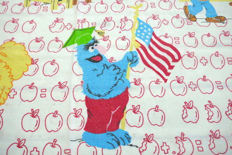 セサミストリートの仲間たち スクール お勉強 りんご柄 ヴィンテージ・ユーズドシーツ(1/2) USA