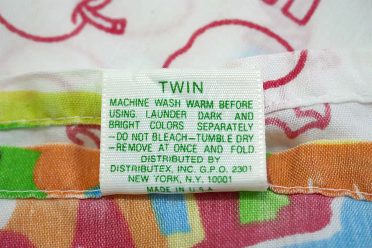 アメリカ西海岸・カリフォルニア州・ロサンゼルスで見つけました・・『セサミストリート』のスクール&リンゴ柄・ヴィンテージ・USEDフラットシーツ(ハーフサイズ)です。