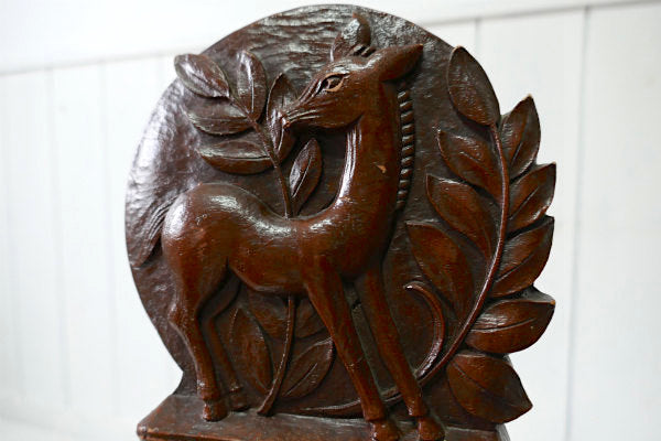 1940's 子鹿 バンビ Syroco Wood 彫刻 アンティーク ブックエンド 本立て ミッドセンチュリー モダン