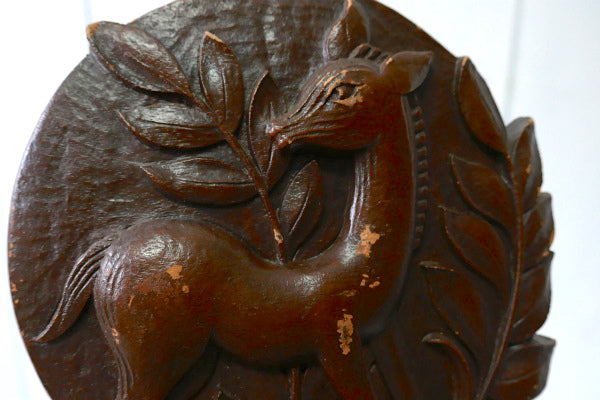 レトロ可愛い子鹿の彫刻が施された、ミッドセンチュリー時代のモダンなデザインです。