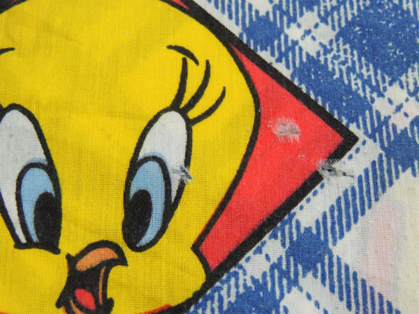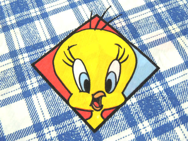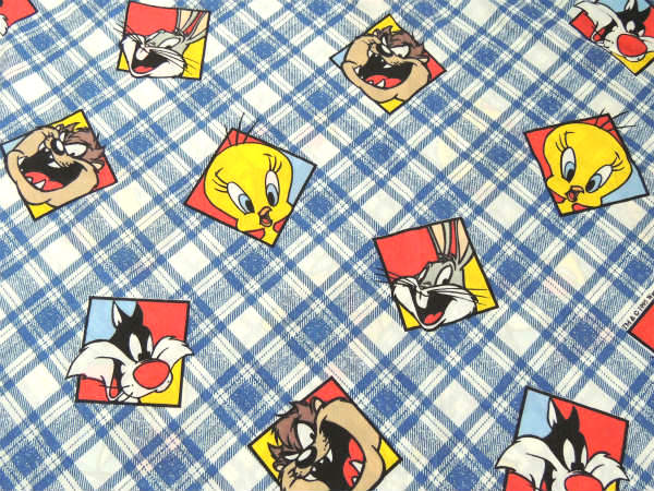 【ルーニーテューンズ】トゥイーティーetc・斜めチェック×パネル柄・ユーズドシーツ(フラットシーツ)