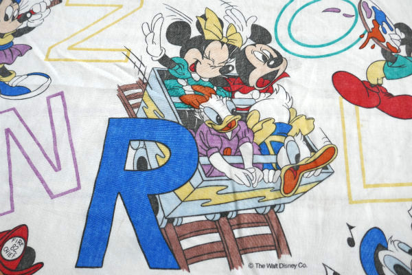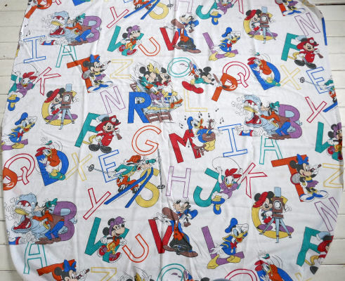ミッキー&フレンズ アルファベット柄 ヴィンテージ ユーズドシーツ(ボックスタイプ)リメイク USA
