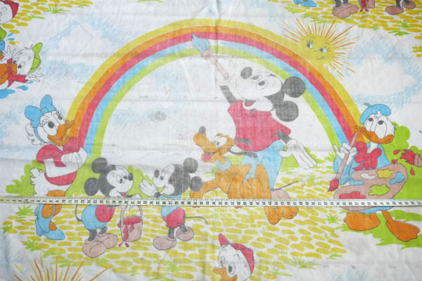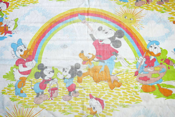 ミッキー&フレンズ カラフル レインボー柄 ヴィンテージ ユーズドシーツ(ボックスタイプ) USA