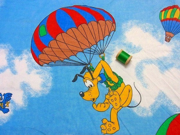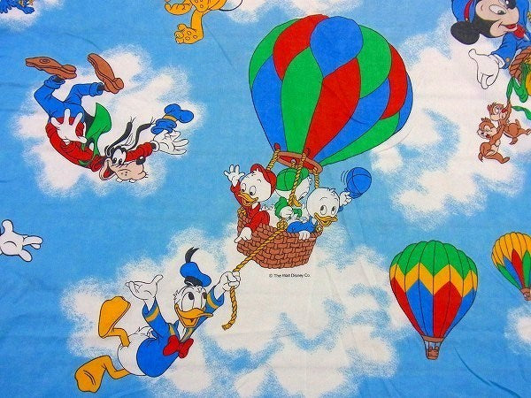 アメリカでみつけました・・ディズニー『ミッキー&フレンズ』の気球柄・ヴィンテージ・USEDフィットシーツです。