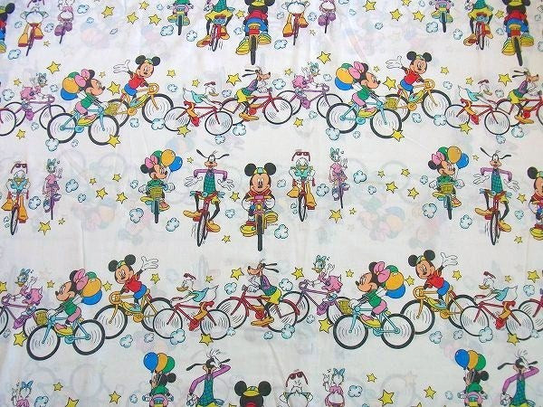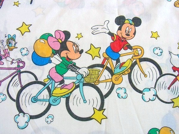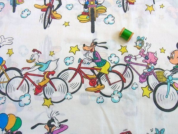 アメリカでみつけました・・ディズニー『ミッキー&フレンズ』の自転車(サインクリング)柄・ヴィンテージ・USEDフラットシーツ(ハーフサイズ)です。