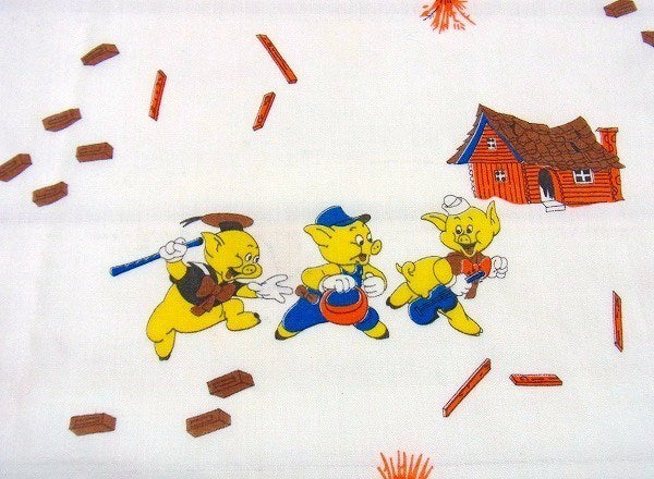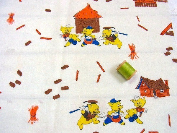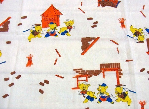 【3匹のこぶた】ウォルトディズニー・ブーフーウー・ヴィンテージ・フラットシーツ USA