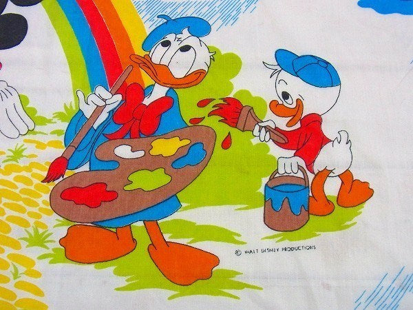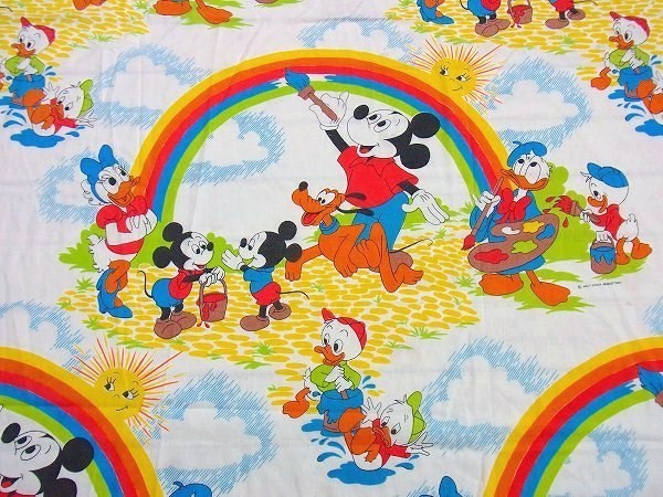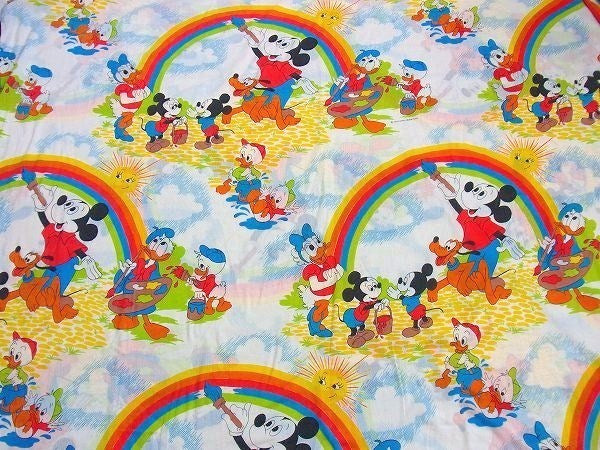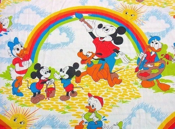 アメリカで見つけました・・ディズニー『ミッキー&フレンズ』のレインボー柄・ヴィンテージ・USEDフラットシーツです。(ツインサイズ)