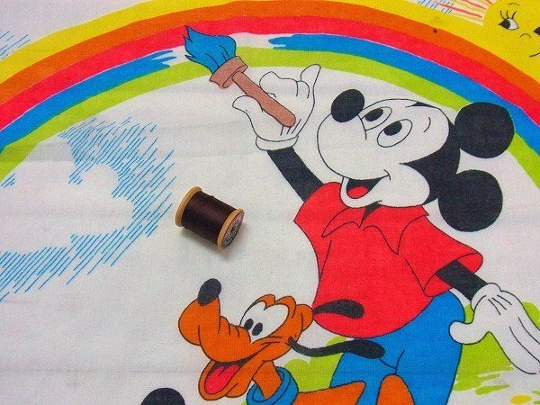 アメリカで見つけました・・ディズニー『ミッキー&フレンズ』のレインボー柄・ヴィンテージ・USEDフィットシーツです。