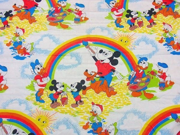 【ミッキー&フレンズ】ディズニー・レインボー柄・ヴィンテージ・ユーズドシーツ(ボックスタイプ)
