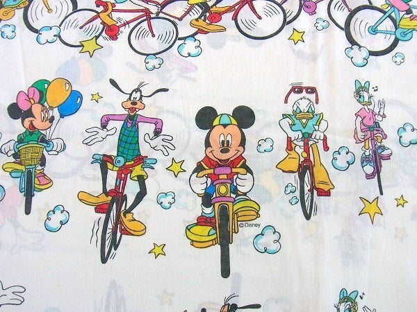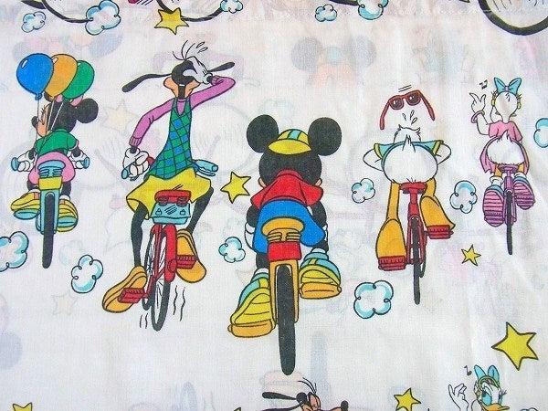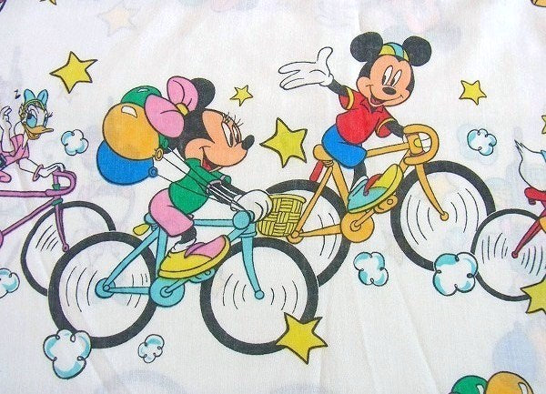 【ミッキー&フレンズ】自転車・サイクリング柄・ヴィンテージ・ユーズドシーツ(ボックスタイプ) USA