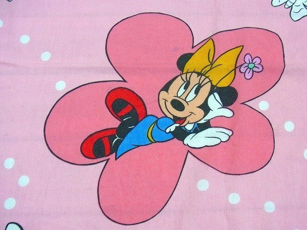 アメリカで見つけました・・ディズニー『ミニーマウス』の花柄・ヴィンテージ・USEDフラットシーツです。(ツインサイズ)