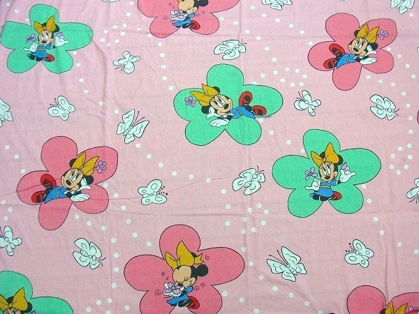 【ミニーマウス】ディズニー・フラワー&蝶々柄・ヴィンテージ・ユーズドシーツ(フラット) USA