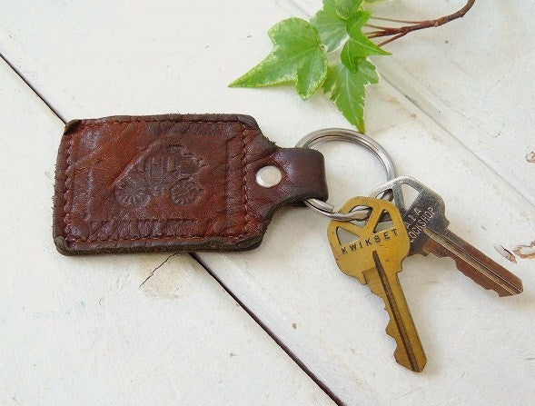 【クラシックカー】ビンテージ・レザーキーホルダー・革製・キー2本付き・USA