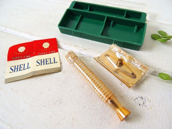 アメリカで見つけました・・『SHELL/シェル』のケース付き・アンティーク&ヴィンテージ・髭剃り (カミソリ・シェービング)金属製・デッドストックです。