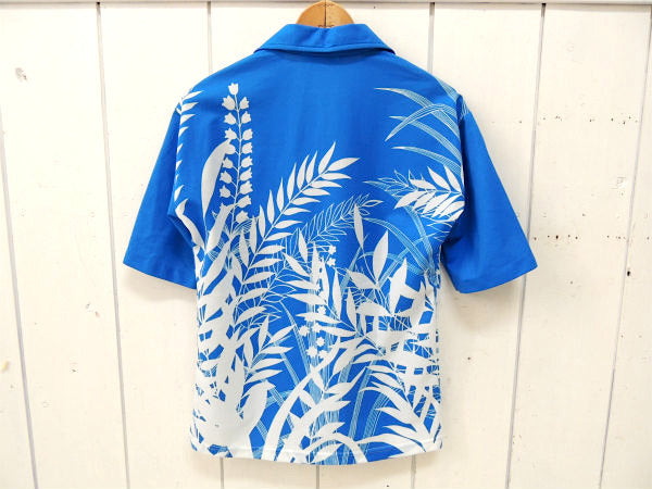 ハワイ・オアフ島で見つけました。1960年代頃〜”MALIHINI HAWAII ・マリヒニハワイ”花柄・ブルーカラーのヴィンテージ・アロハシャツ・柄合わせ