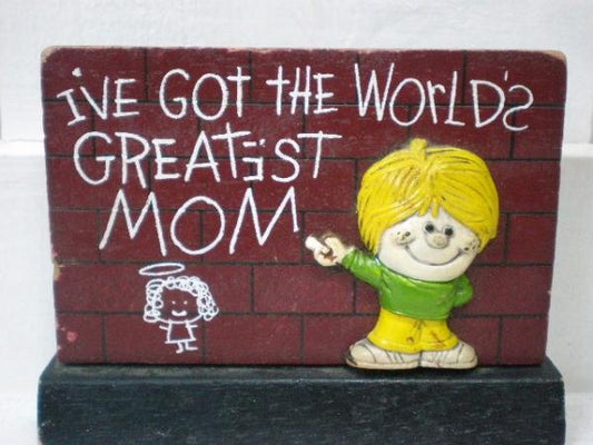 母の日 メッセージドール I'VE GOT THE WORLD'S GREATEST MOM 木製 ヴィンテージ オブジェ 飾り プレゼント USA