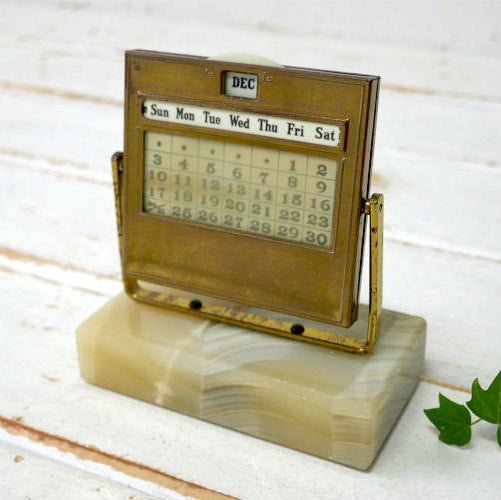 DIAMOND POINT NY 真鍮製 ストーン アールデコ 20's アンティーク デスクカレンダー 卓上カレンダー USA