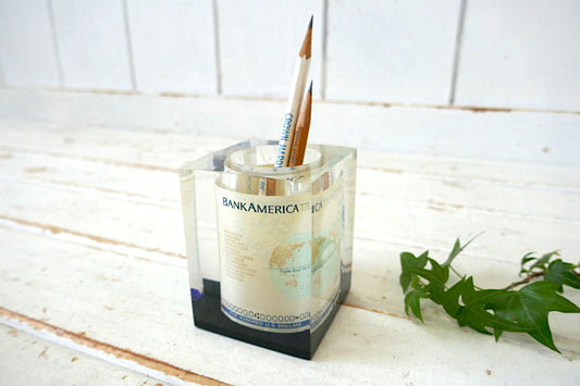 BANK AMERICA バンク アメリカ 銀行 トラベラーズチェック 樹脂製 アドバタイジング 80's ヴィンテージ ペンスタンド ペン立て ペンホルダー USA