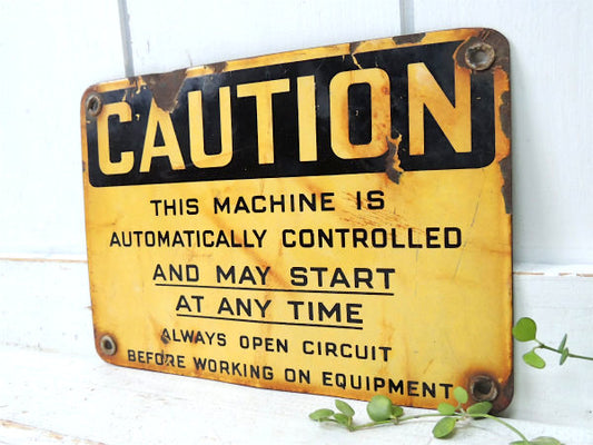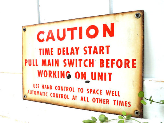 CAUTION ホワイト×レッドカラー・ヴィンテージ・ホーロー看板・サイン・看板・USA