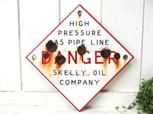 弾痕 DANGER LP GAS LINES 危険 ホーロー製 ヴィンテージ サインプレート 看板 USA