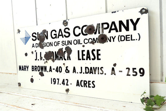 【SUN OIL・弾痕付き】ヴィンテージ・ホーロー製・サイン・レア看板・USA
