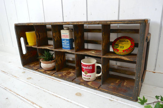 木製 シャビー 赤 仕切り付き ヴィンテージ シェルフ 飾り棚 コレクションボックス USA