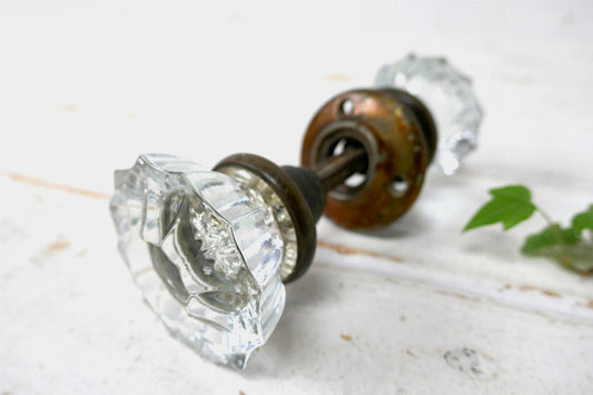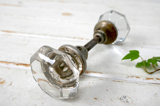 8角形・ガラス製・アンティーク・ドアノブ・ドアパーツ・建材・インテリア USA