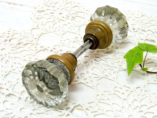 12角形 ガラス製 真鍮製 OLD アンティーク ドアノブ ドアパーツ 建材 インテリア 住宅 エレガント USA