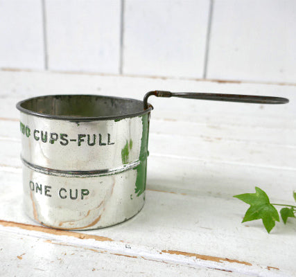 2カップサイズ ティン製 シャビー ヴィンテージ メジャーリング フラワーシフター 粉ふるい キッチンツール USA