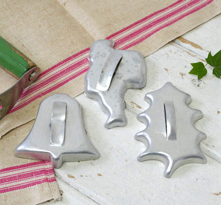 クリスマスツリー サンタクロース ベル アルミ製 ヴィンテージ クッキーカッター 菓子型 3個セット USA