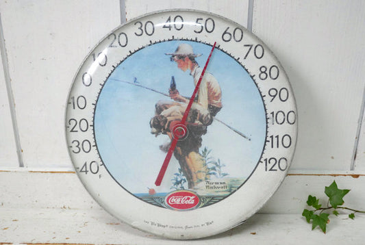 Coca Cola コカコーラ ノーマンロックウェル フィッシングボーイ 釣り アドバタイジング ヴィンテージ 温度計 サーモメーター USA