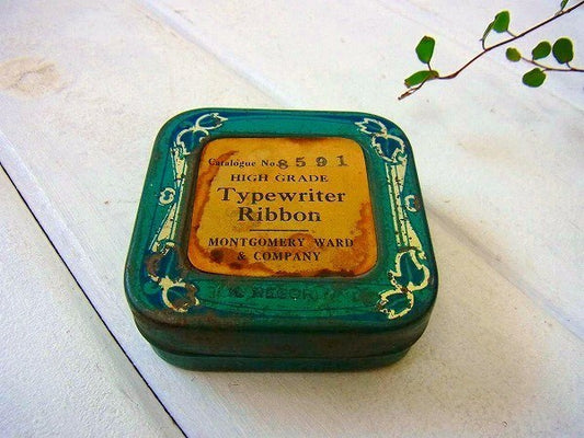 スペイン 蚤の市 ROLAN Suprema 若草色 レトロ アンティーク タイプライター リボン缶 ティン缶 ブリキ缶