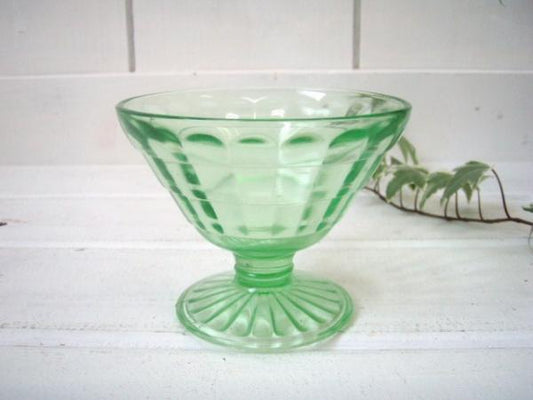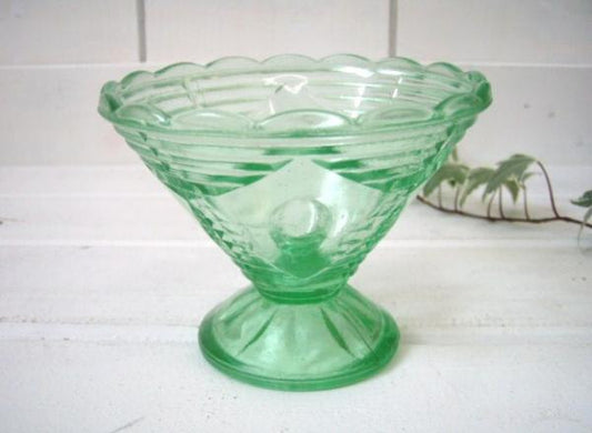 USA・グリーン 硝子 アールデコ・アンティーク・シャーベットグラス・氷コップ・緑ガラス