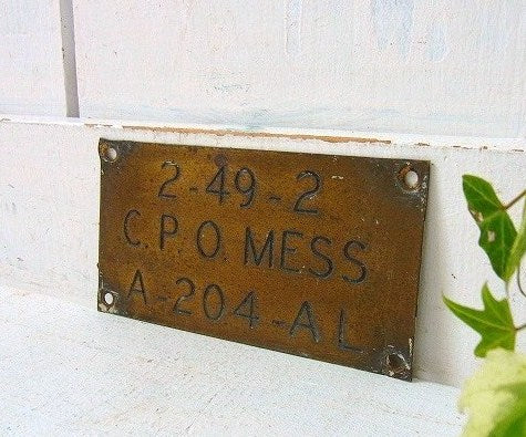 アメリカ海軍・真鍮製・40’sアンティーク・船内プレート/標示プレート USA