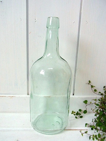 気泡たっぷりの大きなアンティーク・ガラスボトル/空き瓶 USA