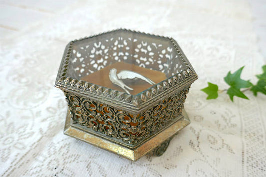 ベベルガラス エレガント 六角形 アンティーク ジュエリーボックス 宝石箱 里帰り品