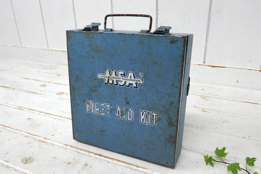 MSA ブルーメタリック メタル製 シャビー ヴィンテージ 救急箱 ファーストエイド 収納 USA