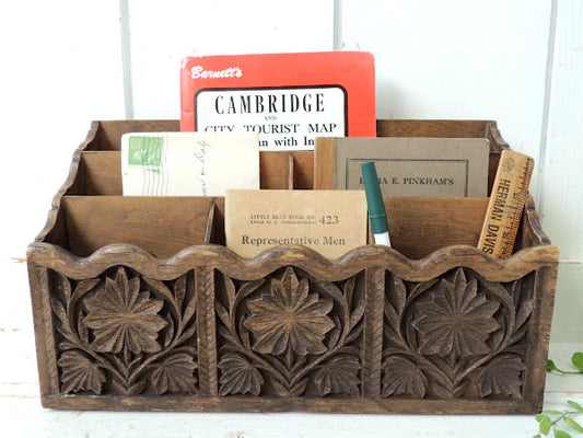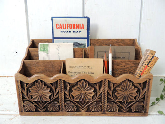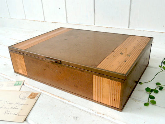 レトロな飴色・木製・ヴィンテージ・卓上チェスト・書類ケース・収納ケース USA